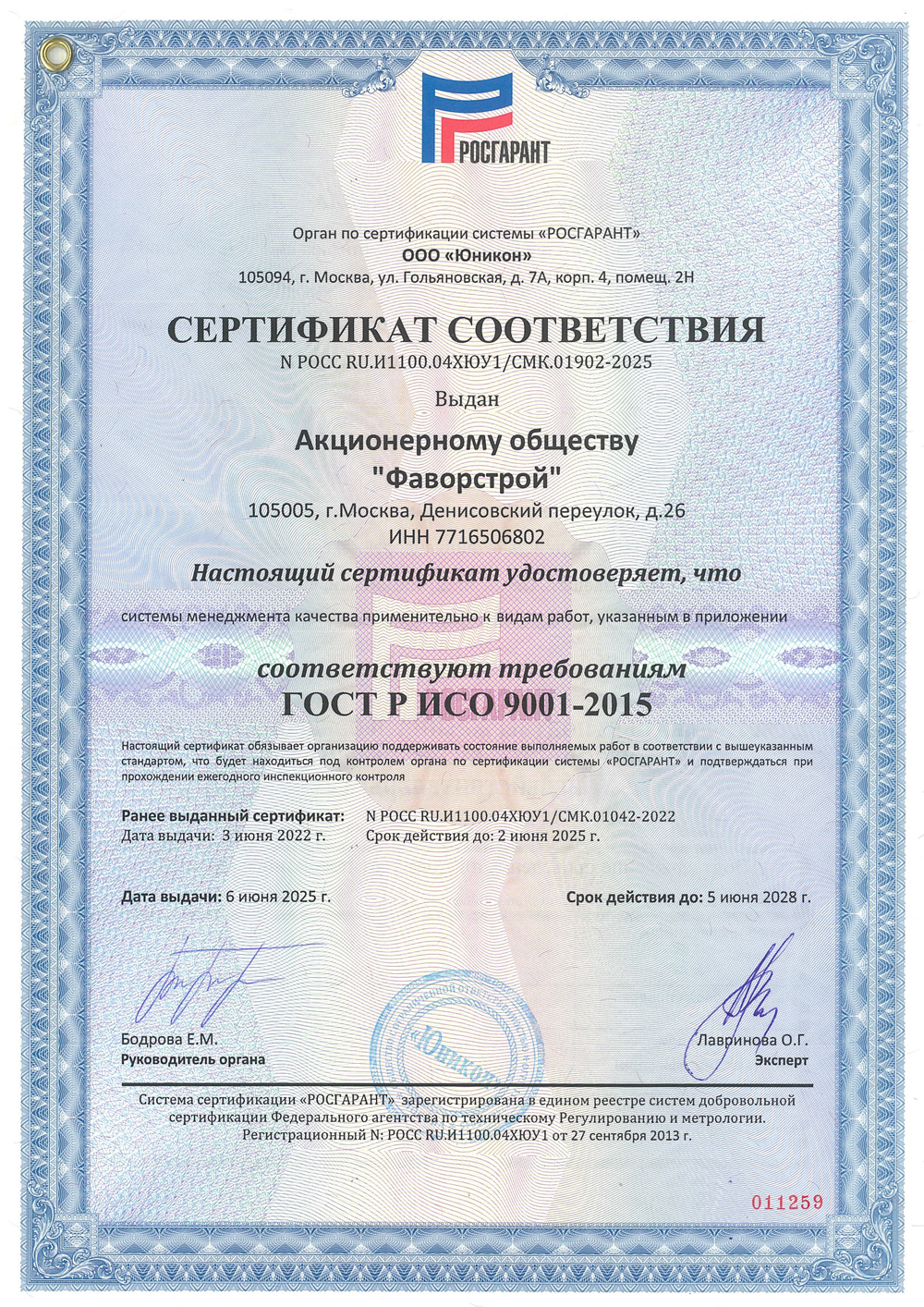 Сертификат соответствия ГОСТ Р ИСО 9001-2015 |